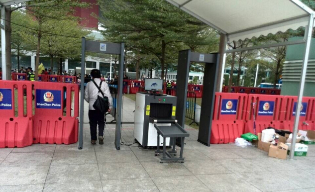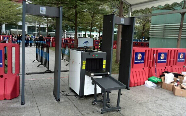 2014年12月7日,我司的安檢設備為深圳第二屆國際馬拉松賽保駕護航!為了確保這次深圳國際馬拉松賽能夠順利進行,每一個在進入賽場的人都必須經過安檢,在創藝龍的X光安檢機的保護下,從下圖就可以看出創藝龍X光安檢機安裝在賽場門口,安檢工作做得如此之嚴謹,可見安全多是多么的重要。