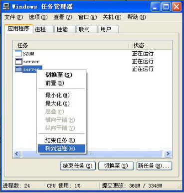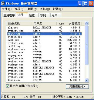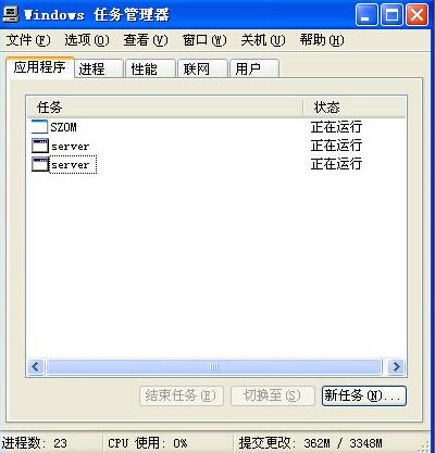 木馬程序或者病毒運行而引起的窗口變小的情況,這時同時按住 Ctrl+Alt+Del鍵調(diào)出操作系統(tǒng)的“任務(wù)管理器”,我們會發(fā)現(xiàn)除了“SZOM”的軟件外還有其他的運行程序。