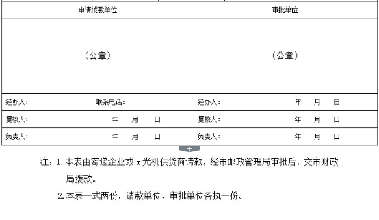 填寫以上信息后可以提交到當地郵政管理局,等待審批,審批后會=交市財政局撥款,如此你就可以輕松拿到這筆補貼了,當然各地情況不一樣,補貼也會不一樣,浙江政府為快遞業購置快遞安檢機補貼50%資金,新疆那邊是30%等等,各地情況不一,所購置的快遞安檢機補貼金額也會不同!